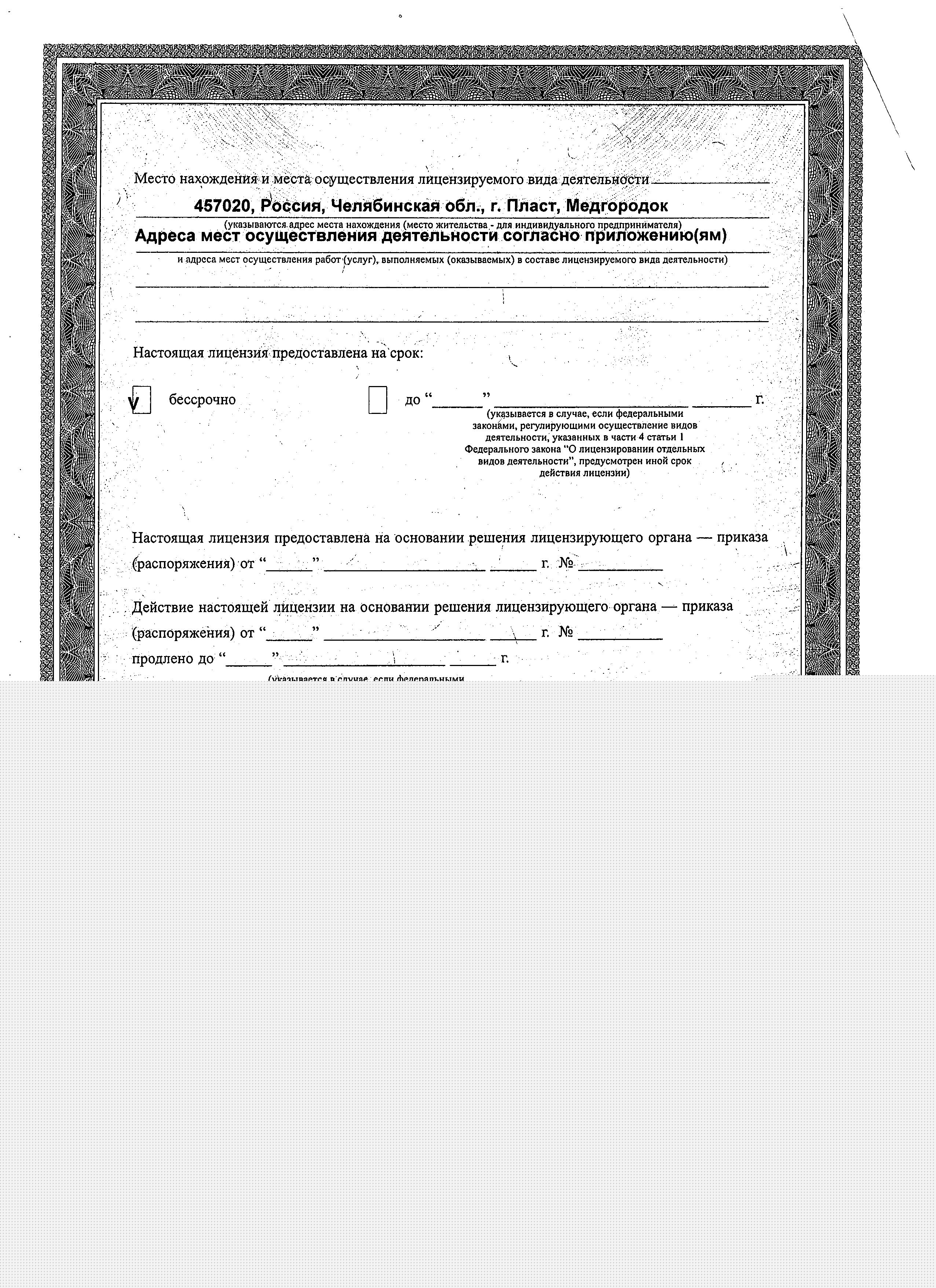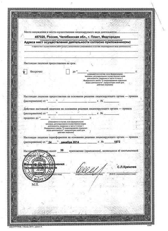 Лицензия на осуществление медицинской деятельности.( 2 стр)